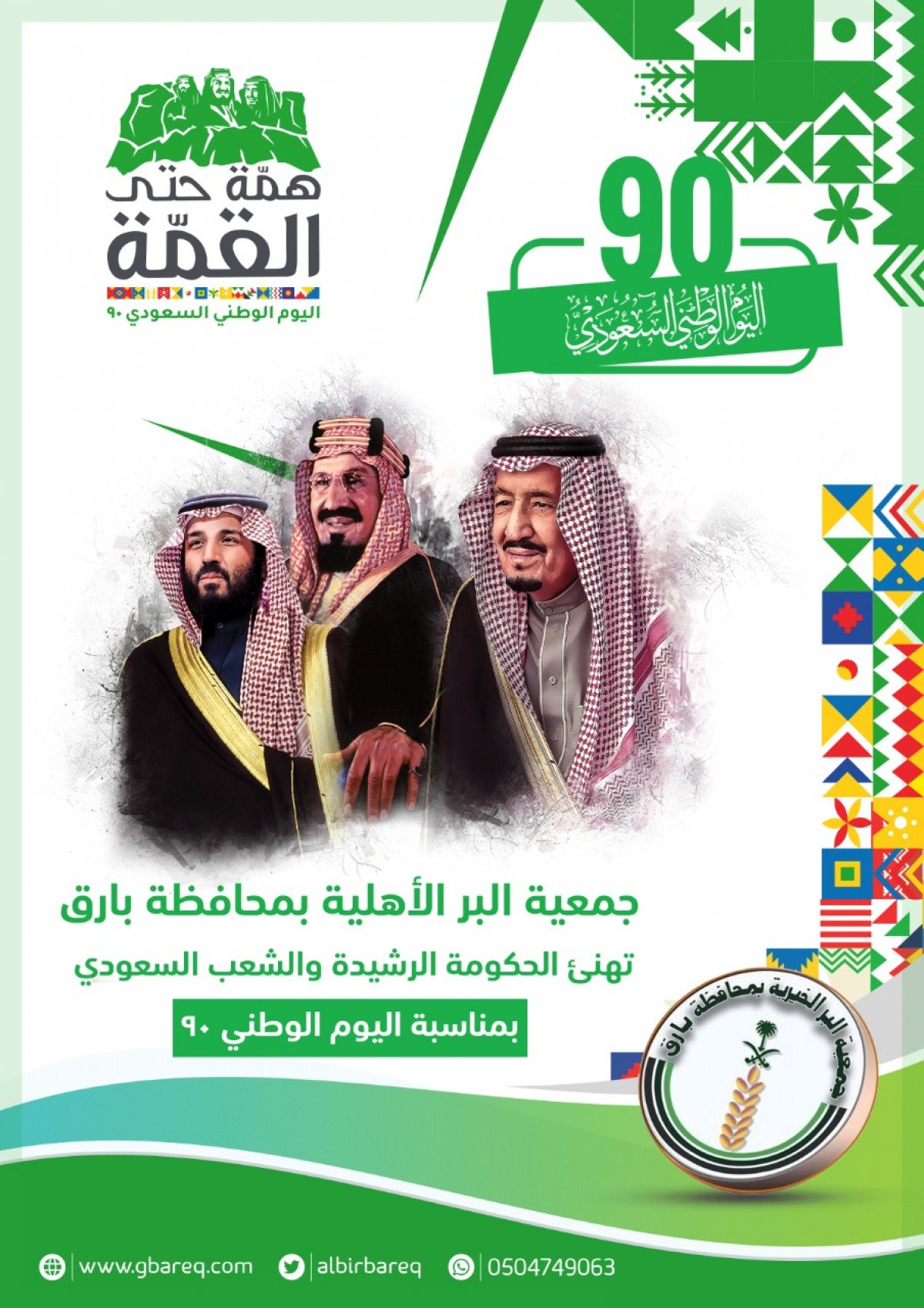 جمعية البر ببارق بكافة منسوبيها تهنئ القيادة الرشيدة بذكرى اليوم الوطني